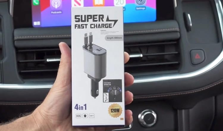 4-in-1 Retractable Car Charger - 120W Super Fast Charging All Device